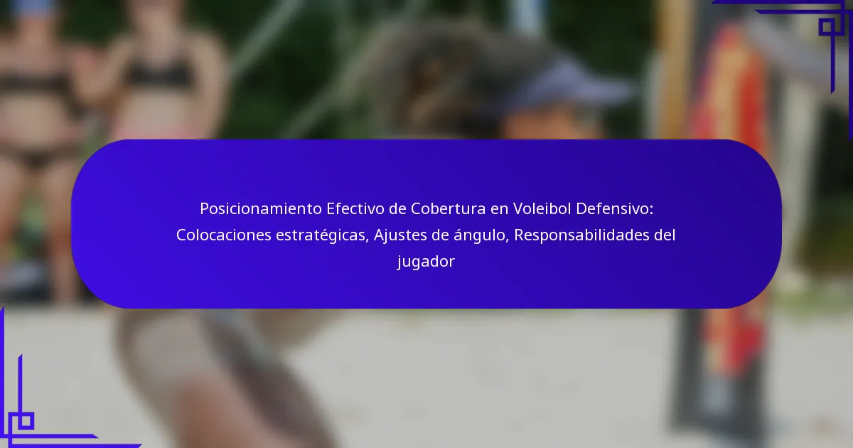 El posicionamiento efectivo de cobertura en el voleibol defensivo es esencial para maximizar las capacidades defensivas de un equipo. Al enfocarse en colocaciones estratégicas, ajustes de ángulo y responsabilidades de los jugadores claramente definidas, los equipos pueden mejorar significativamente su respuesta a los ataques de los oponentes. Comprender estos elementos permite a los jugadores anticipar movimientos y optimizar sus estrategias defensivas en la cancha.